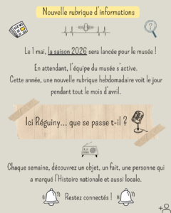 En avril 2026, le musée vous propose une rubrique d’informations, avant de débuter la saison le 1er mai prochain.